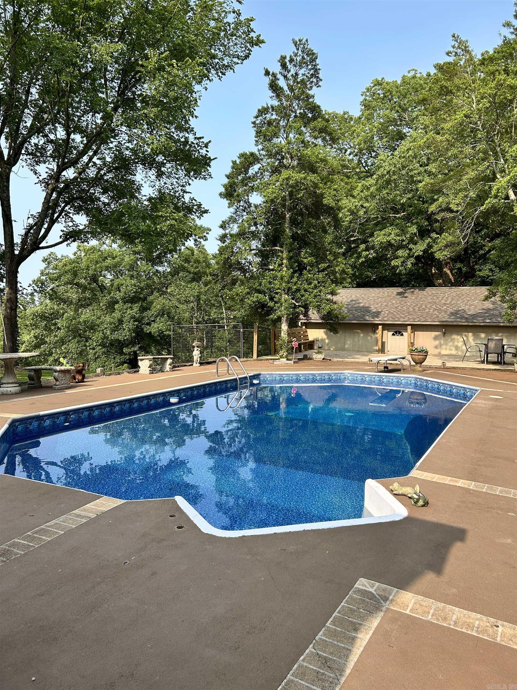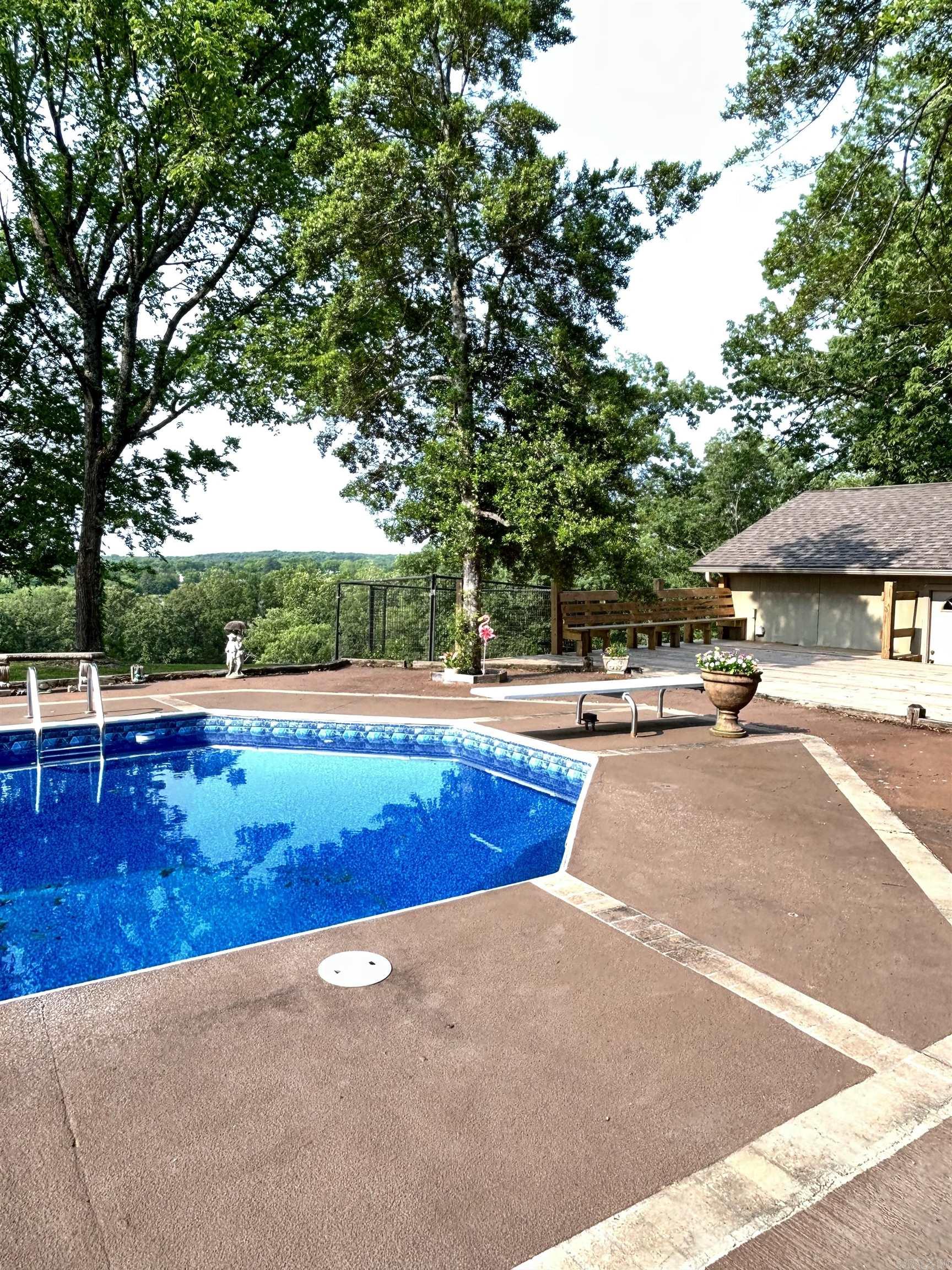 Welcome to the market, this stunning abode, offering a fantastic view of sunrises and sunsets, and overlooking the city on 20+/- Acres (a New survey will determine the exact acreage). This 2-bedroom, 2-bath home also features an attached suite with a fireplace, full bath, and an open space that can be used as an office, den, or bedroom, overlooking the pool. The kitchen features an interesting built-in pantry. The dining room is separate, with a beautiful oak ceiling. The primary and secondary bedrooms are both en-suite. Outside, you will find a nice inground pool and pool house. The pool house features an open area, a full bath, and a pool table that will convey. There is a new Barn/RV storage. The property is fenced and cross-fenced. Private remote gate. By appointment only. Pre-approval and/or proof of funds are required for scheduling.