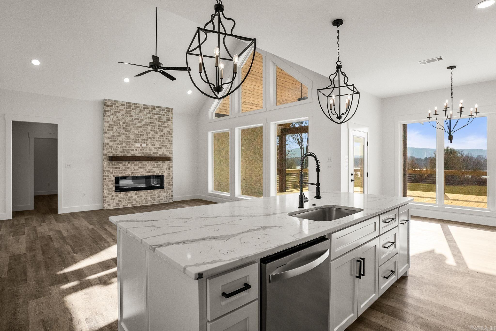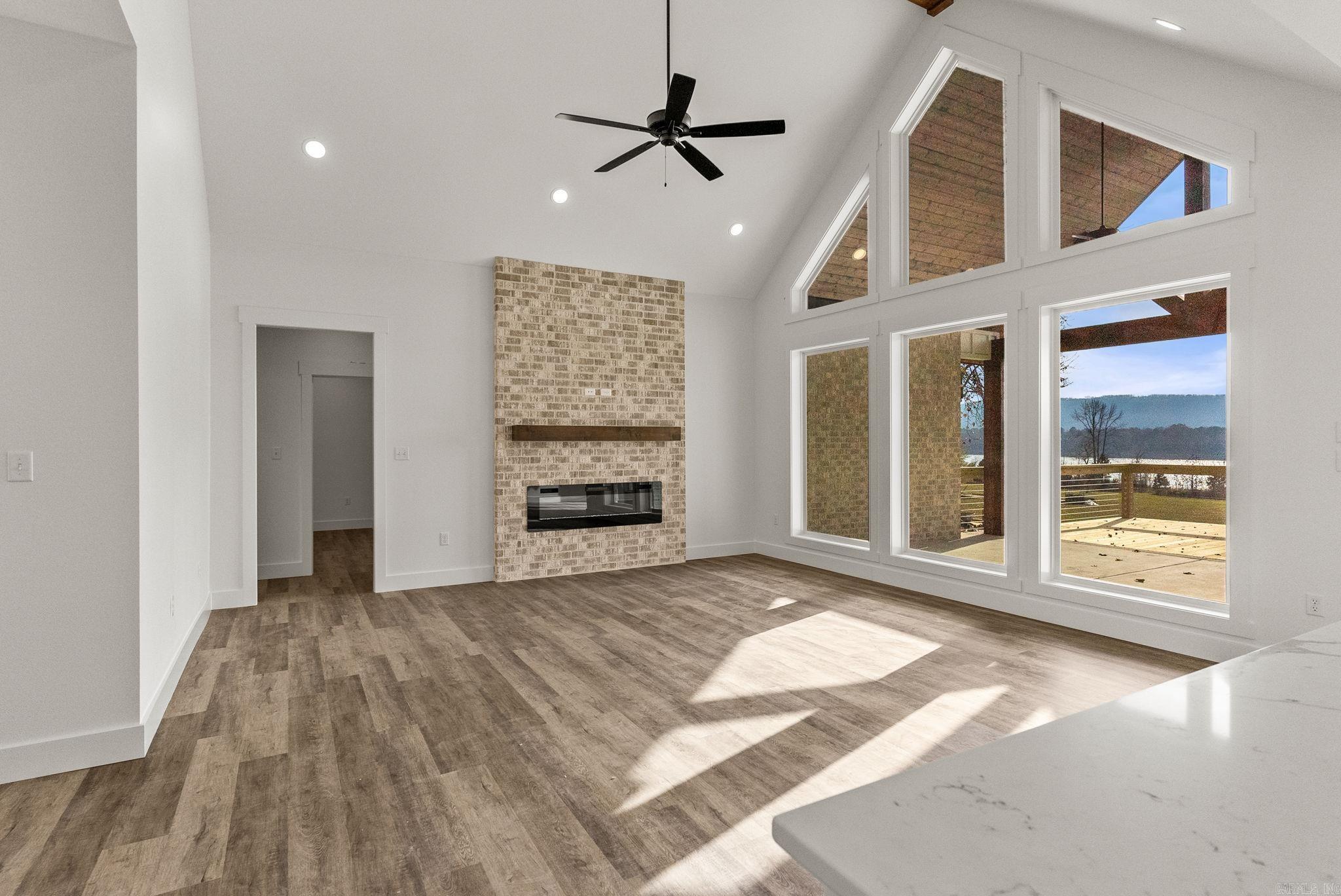 Lakefront lot with stunning water views! Beautiful lakefront property features vaulted Ceilings in the living room that extend to covered patio. The vaulted windows flood the open concept plan with Natural light. The spacious back porch is perfect for relaxing or entertaining while overlooking the water This home offers four generously sized bedrooms and three full bathrooms providing plenty of space for family and guests. The kitchen is a chef's dream with a fabulous pantry abundant cabinetry and plenty of room for meal prep and storage. The primary suite includes a huge walk in closet for all your wardrobe needs. A three car garage offers ample storage for all your lake toys and more. Whether you're looking for a weekend retreat or a year round residence this home has it all!