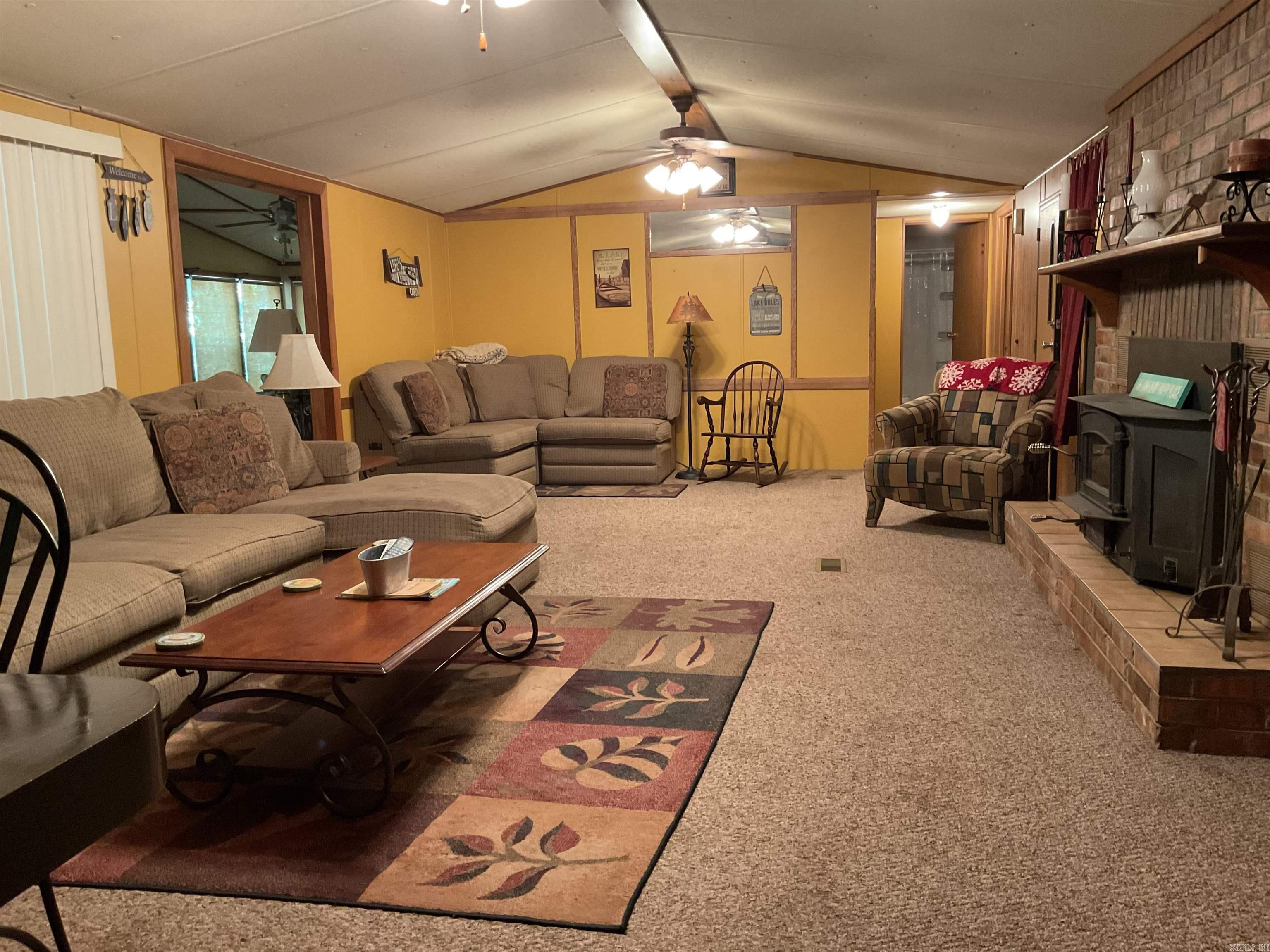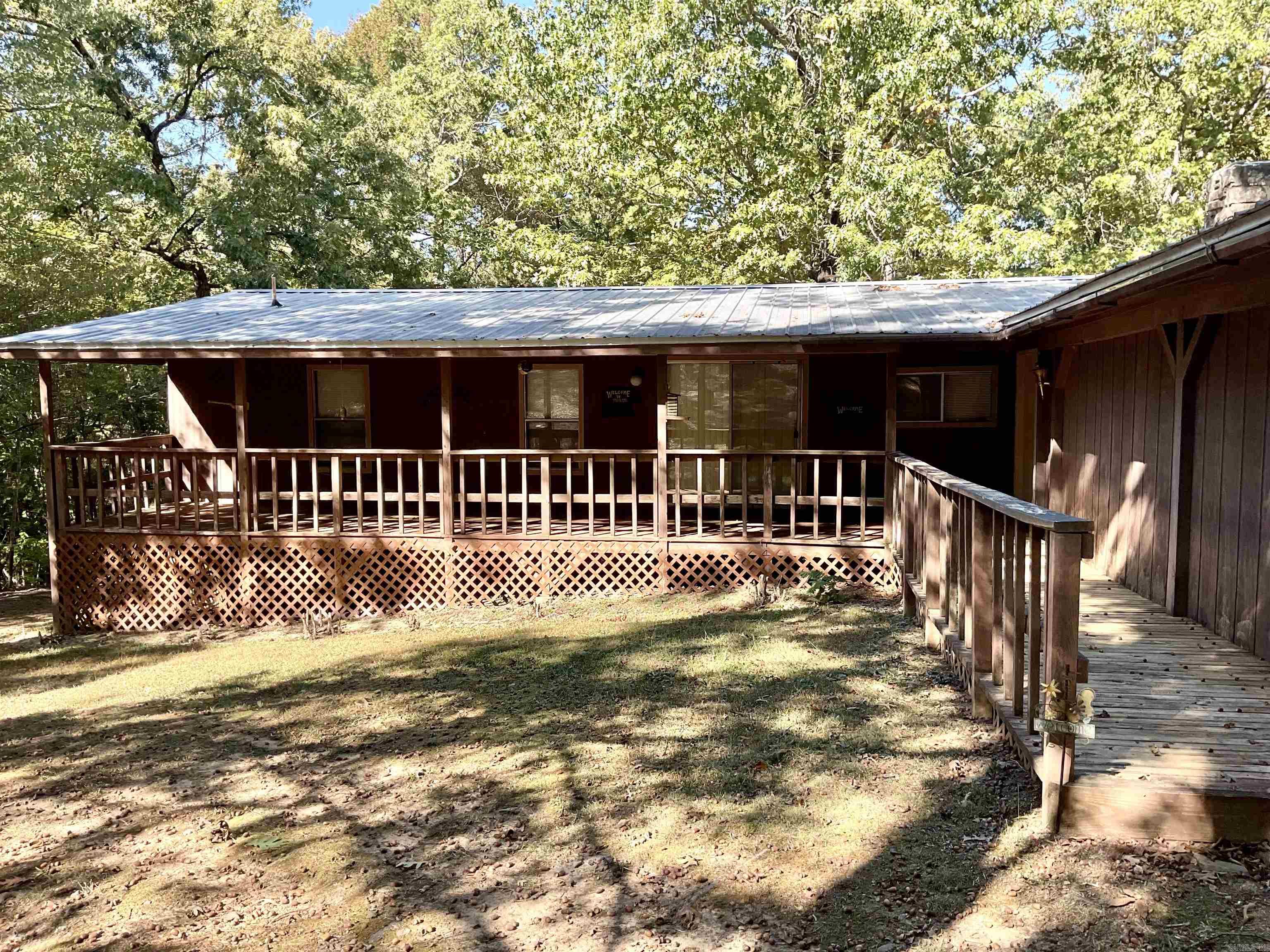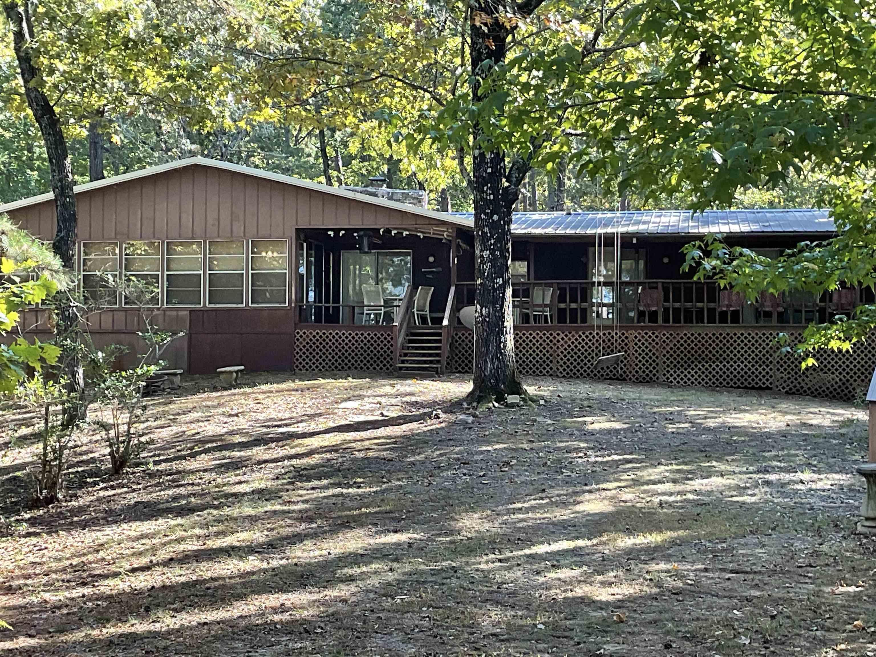 Cabin in the woods! LAKEFRONT with gentle walk to the water, 1.20 acre lot and not in a subdivision! Plenty of room to sleep a group of people! 4 bedrooms and a large sun/dining room with a wall of windows. Large back deck with rocking chairs for outside enjoyment. Main part of home is central heat and air, the built on rooms have window air and space heaters. This home comes with the furnishings you see even the dishes. Kitchen has a Jenn air down draft and all appliances convey. Ready to enjoy even through the winter with the wood burning heat unit. Ceiling in the living and kitchen is vaulted, big front and back porches and lots of privacy. Large two car attached garage. 2 outbuildings, one for toys and one for tools and stuff.
