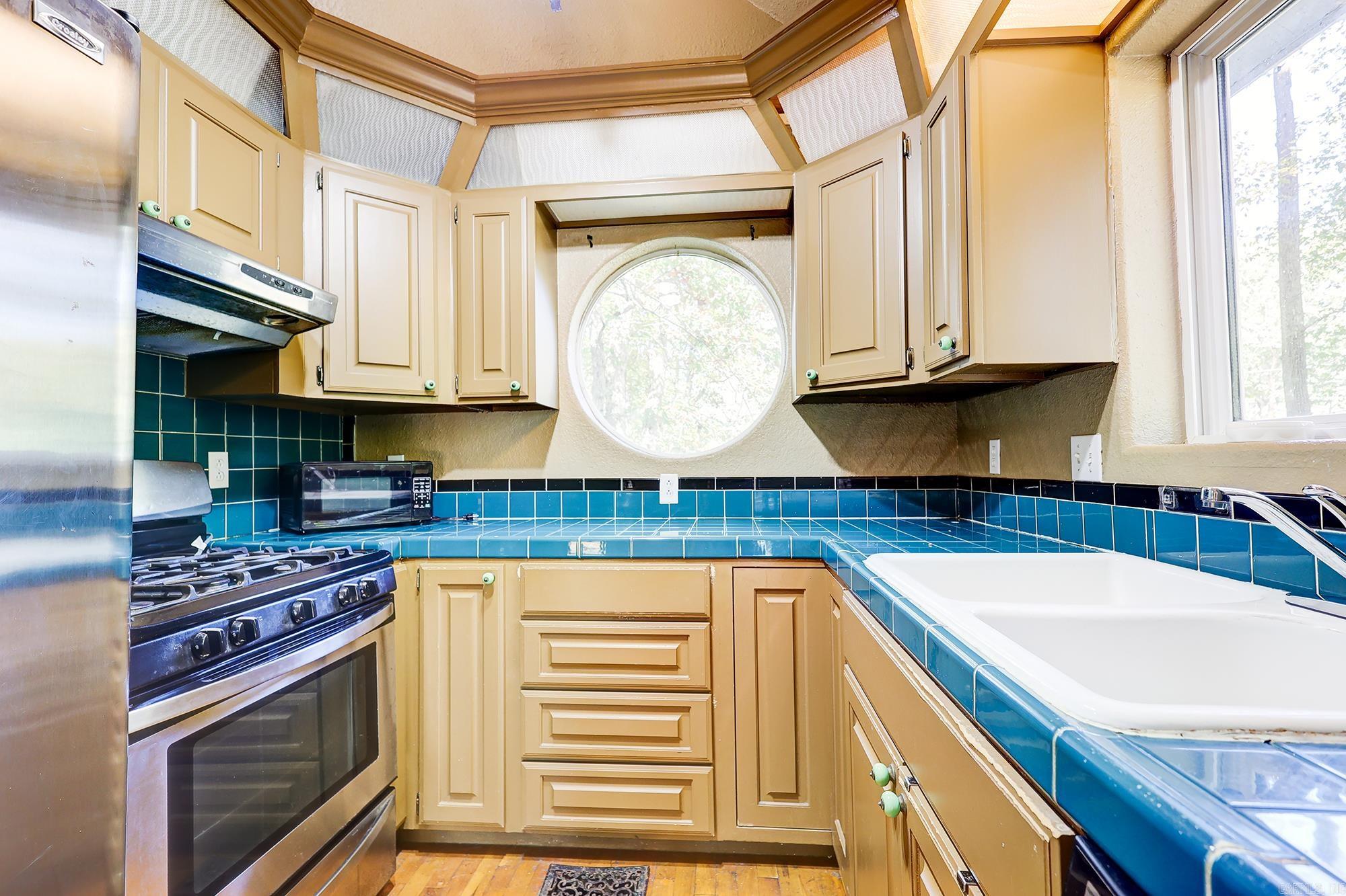 Tucked among mature trees on a .24 acre corner lot, this charming multi-level home blends modern design with natural beauty. Featuring a striking A-frame–inspired roofline, board-and-batten siding, and a spacious wraparound deck, it offers serene views and abundant natural light. Inside, vaulted ceilings, hardwood floors, and large windows create an airy, open feel. The kitchen boasts custom cabinetry, stainless steel appliances, and a unique circular window. The living area opens to the deck for seamless indoor-outdoor living, while the loft and walkout lower level provide flexible space for bedrooms, an office, or a studio. Surrounded by woods yet close to town, this peaceful retreat combines comfort, character, and endless potential — perfect for anyone seeking a modern home in a private, natural setting. The downstairs basement/converted garage is not included in the square footage. Square footage comes from tax records and measurements are encouraged. HVAC, Roof and Hot water heater are all 2019 models.